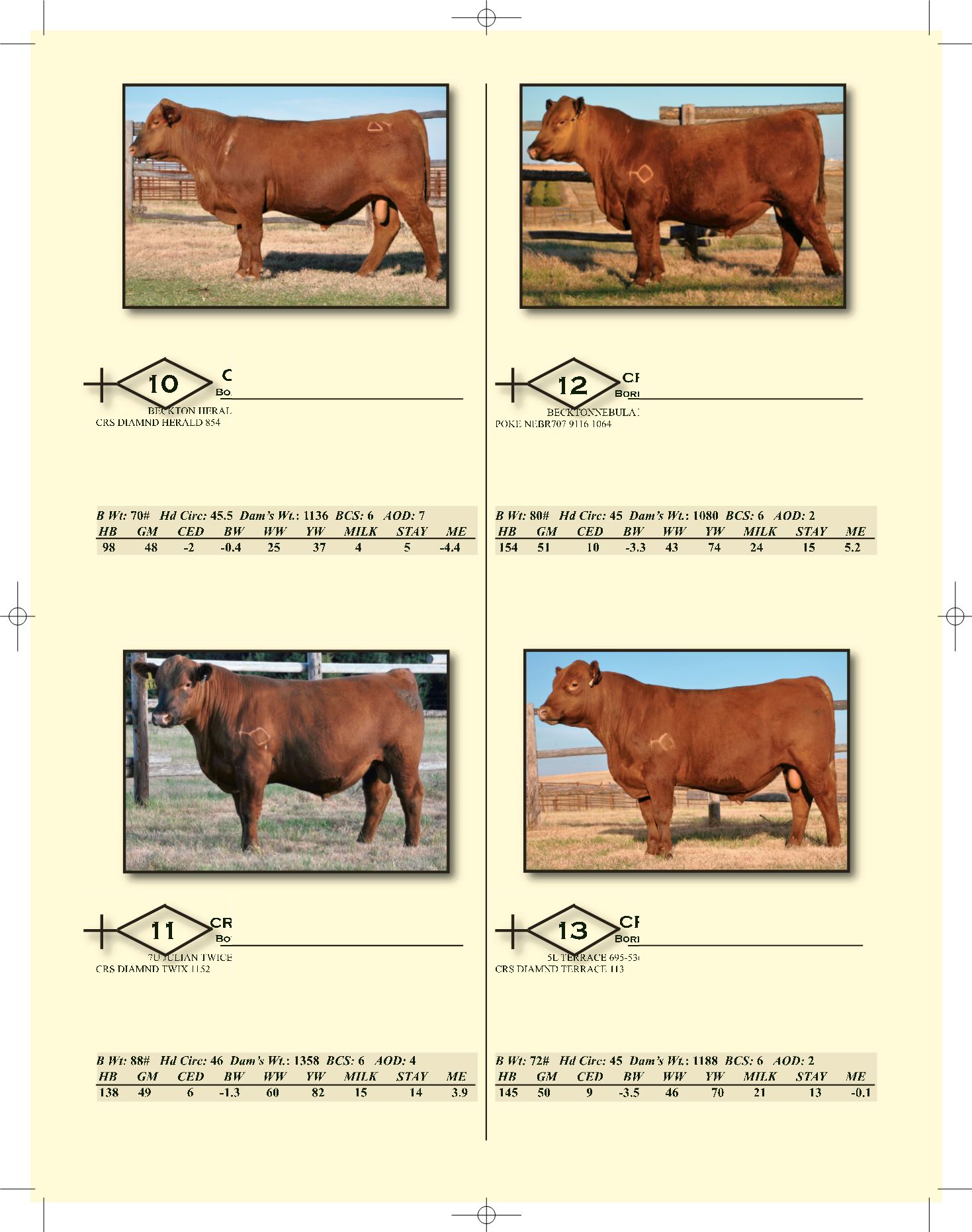 percentile or above for several traits: CED, BW, Milk, HPG, CEM, Stay,