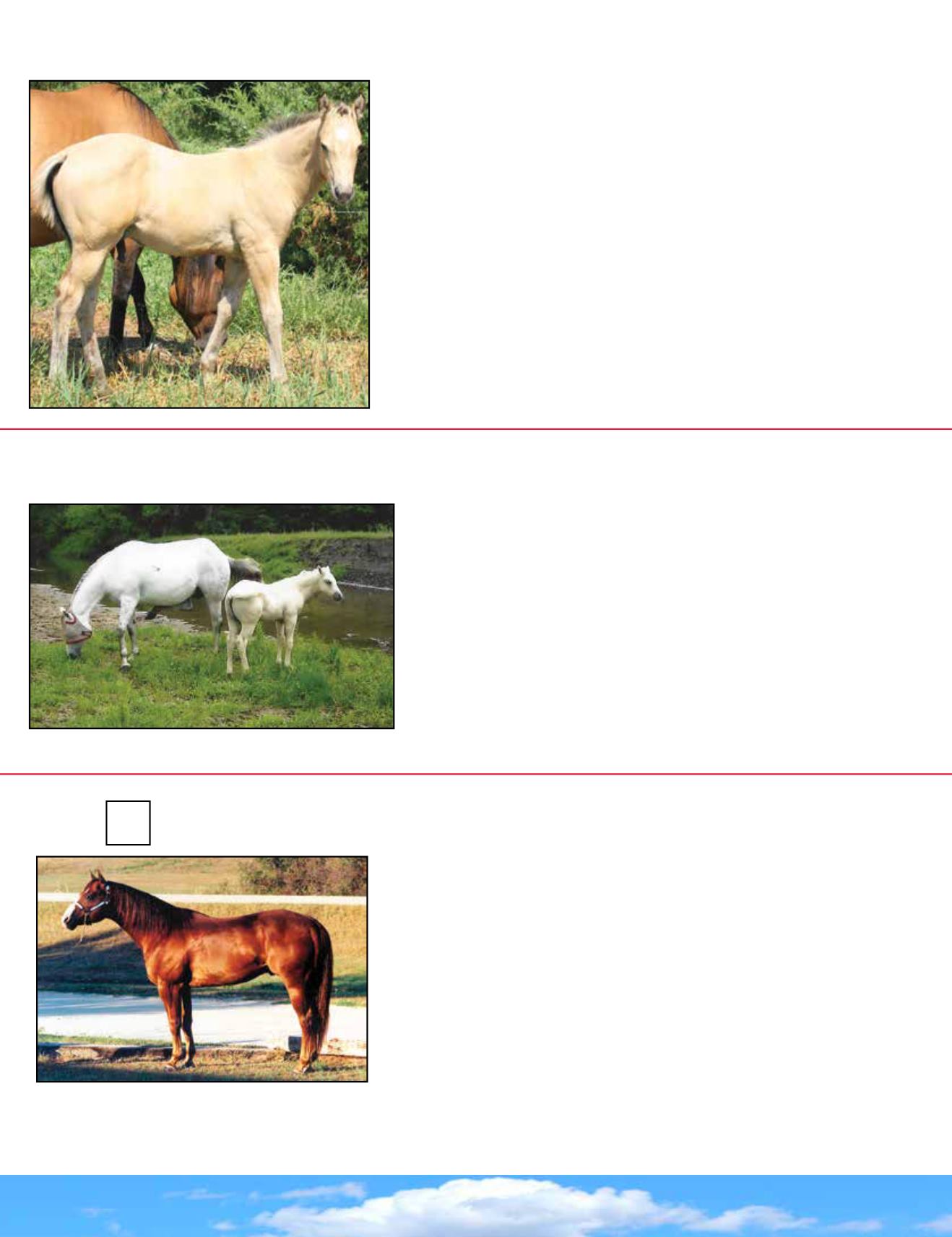 muscle, and bone to your progam. His daughters will make you famous; they are poducers. He is sound and easy to hand or pasture breed; collects and semen freezes well. Eyes on Red’s foals
