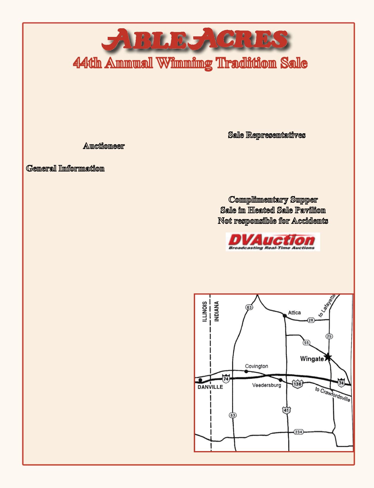 Sale at farm, located one mile due west of Wingate on SR 55,