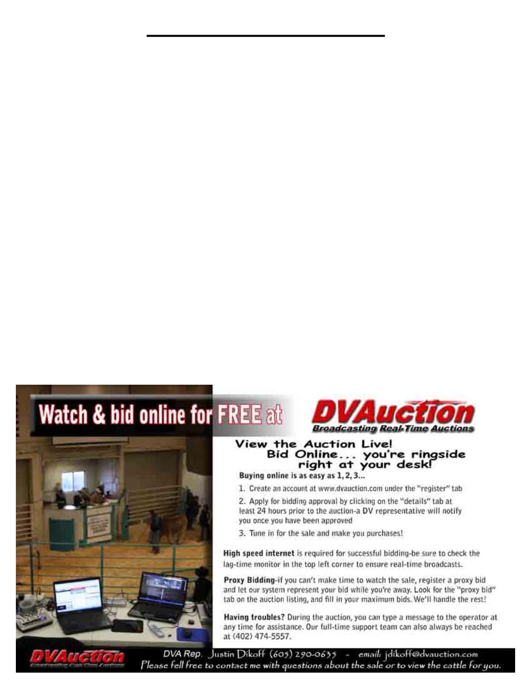 the auction and must register for bidding at least 24 hours prior to the auction. Please go to DVAuction.com for details and instructions. Payment