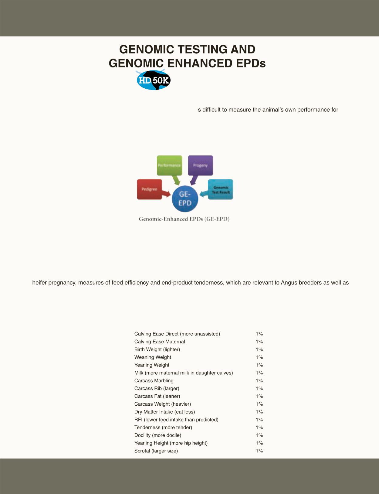 reporting of Angus EPDs, genomic test results have also been incorporated into the EPD.