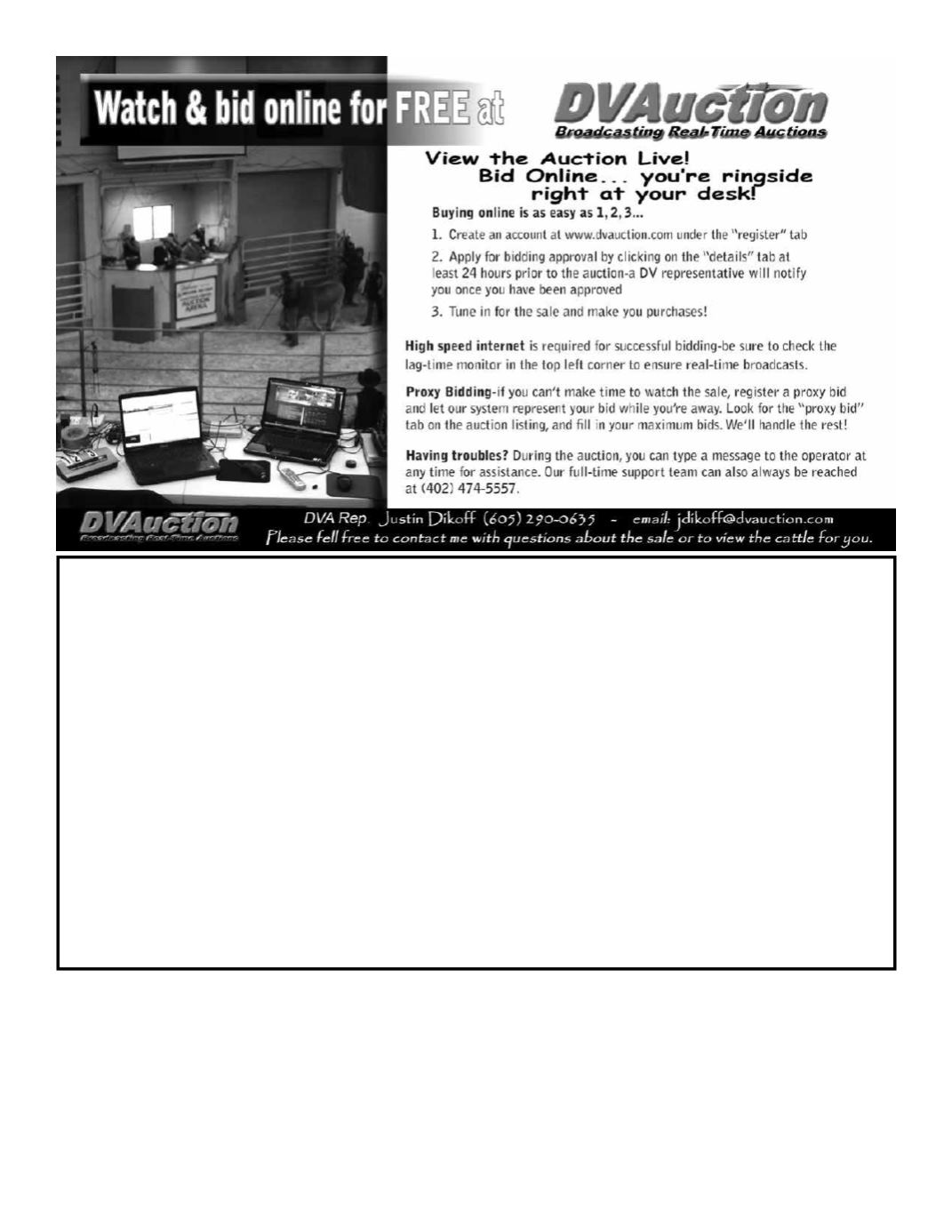 concerning any of the bulls or anything pertaining to the sale in general, please call.